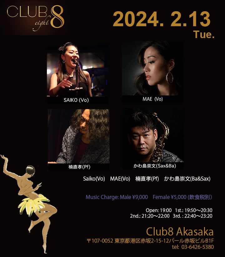 2月13日の火曜日は赤坂クラブエイト!