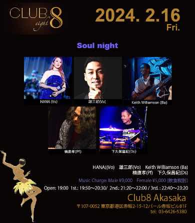 2月16日の金曜日は赤坂クラブエイト、ソウルナイト!