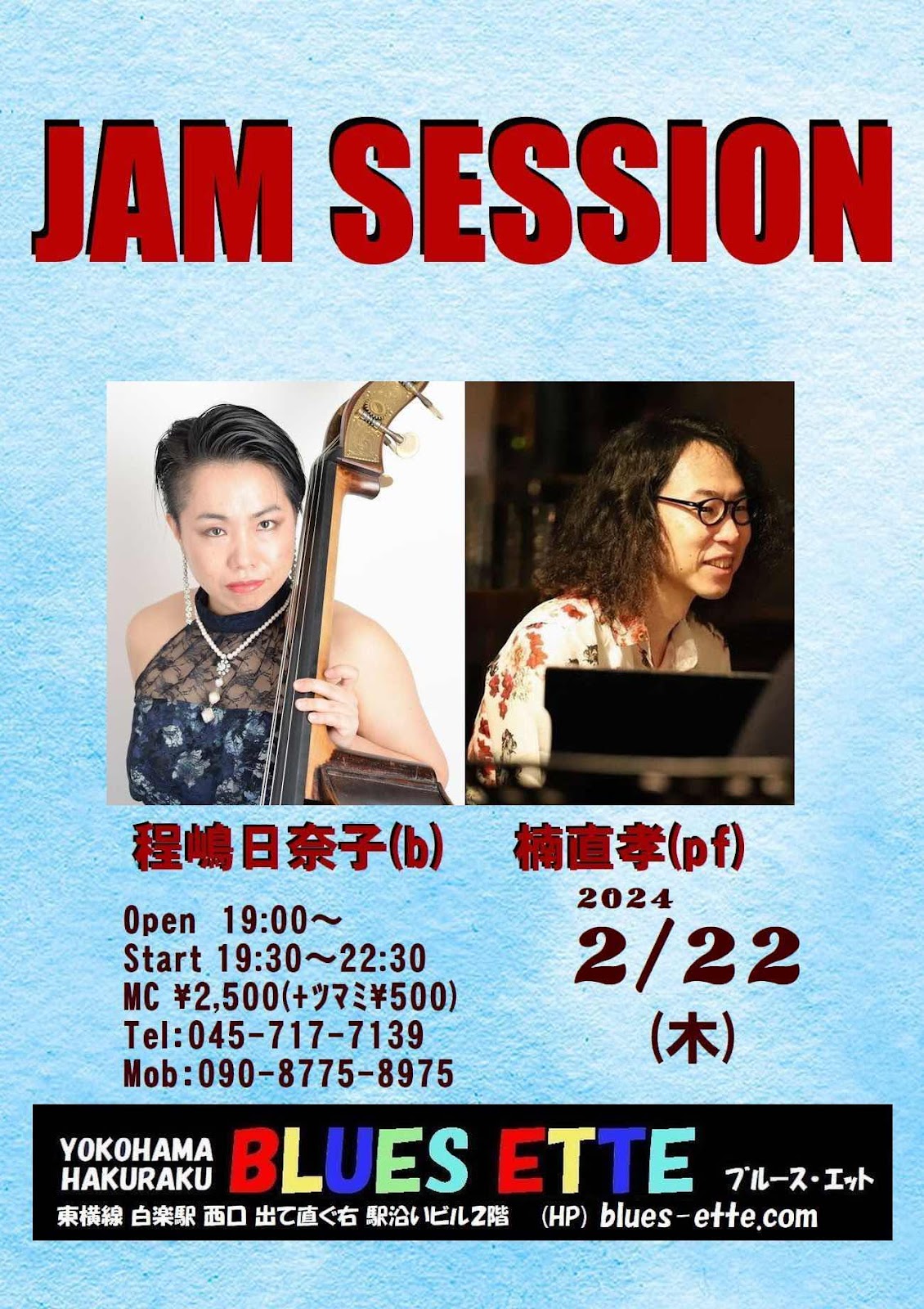 2月22日の木曜日は19:30から白楽ブルースエットにてジャムセッション!