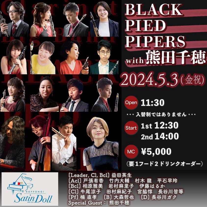 5月3日の金曜日は12:30から、六本木サテンドールにてブラックパイドパイパーズ!