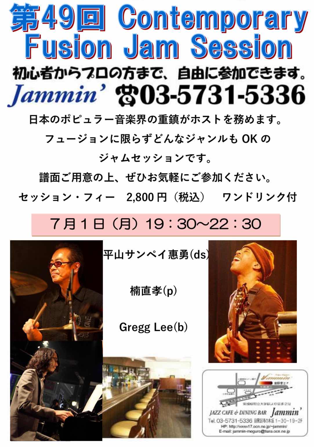 7月1日の月曜日は19:30から、サンペイさん、グレッグとジャムセッションです!