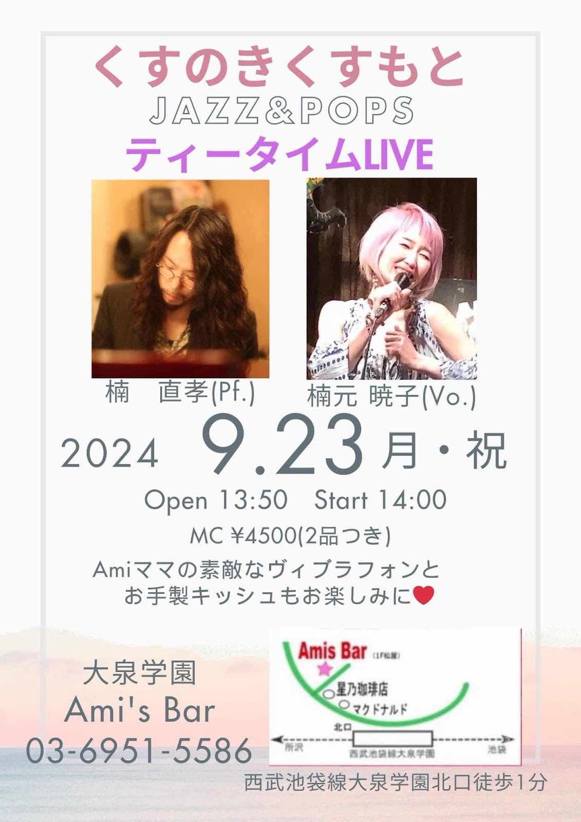 9月23日の月曜日は14時から大泉学園アミズバーにて楠元暁子さんと共演です!
