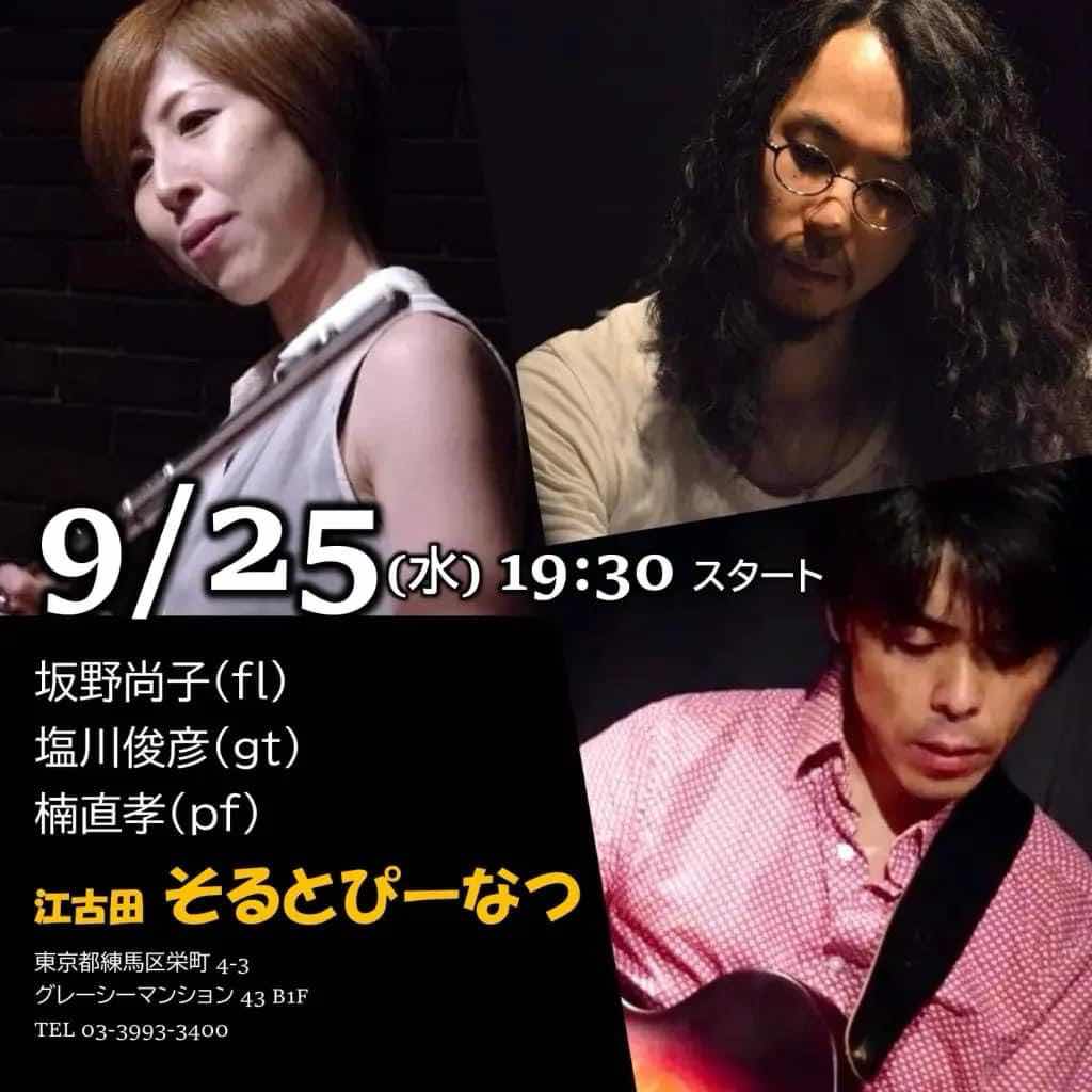 9月25日の水曜日は19:30から江古田そるとぴーなつにていつものこのトリオ!