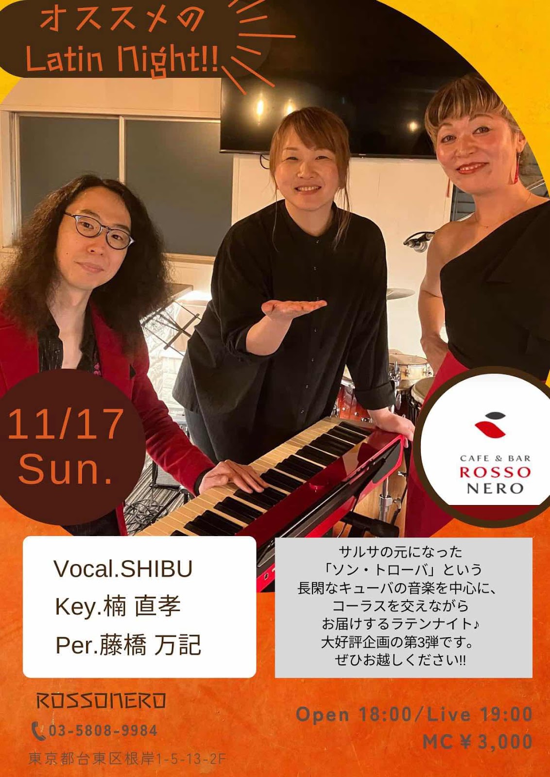 11月17日の日曜日は鶯谷ロッソネロにてラテンライブです!