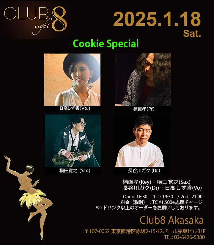 1月18日の土曜日19:30から赤坂クラブエイト!