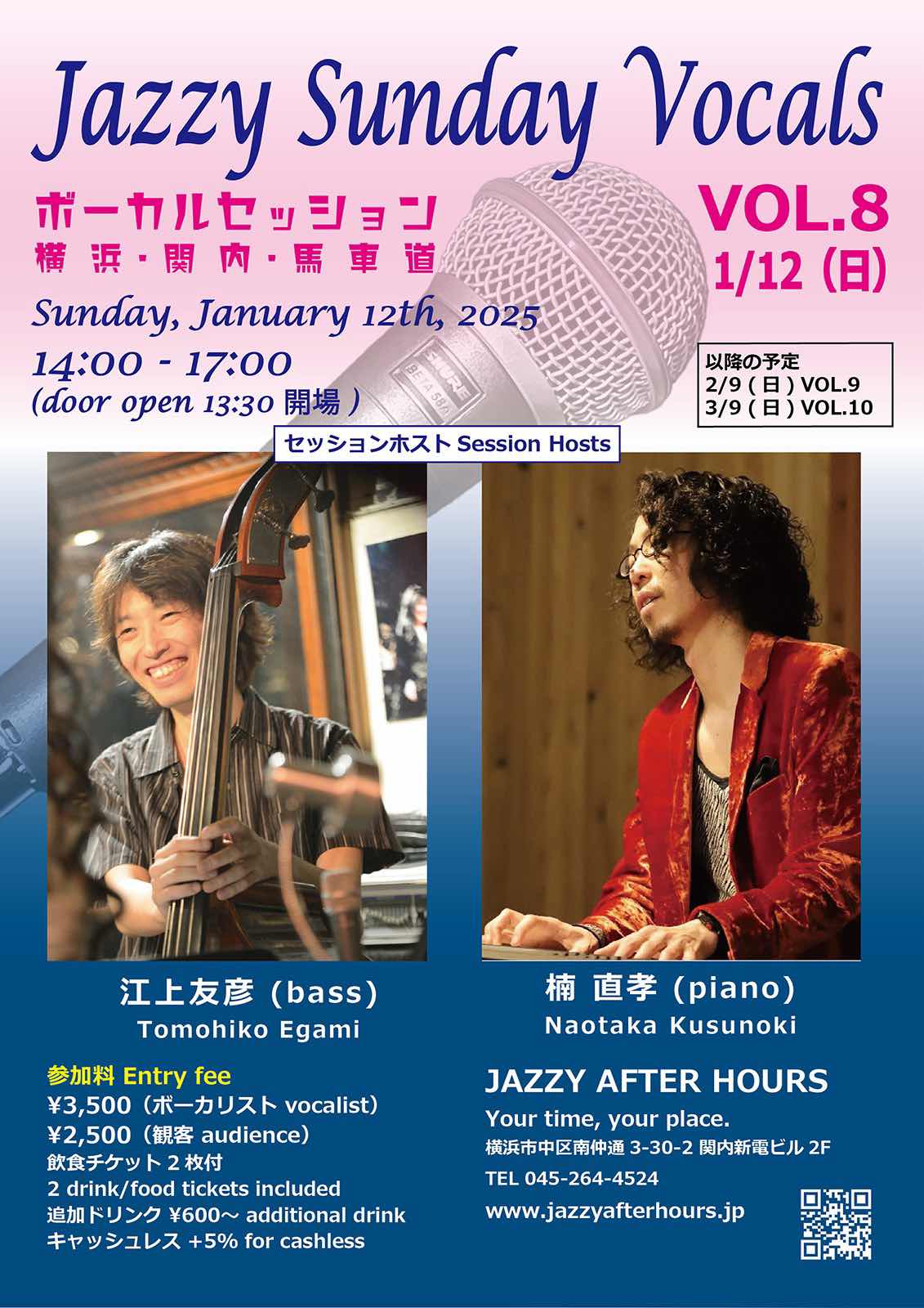 1月12日の日曜日は14時から関内ジャジーアフターアワーズでボーカルセッション!