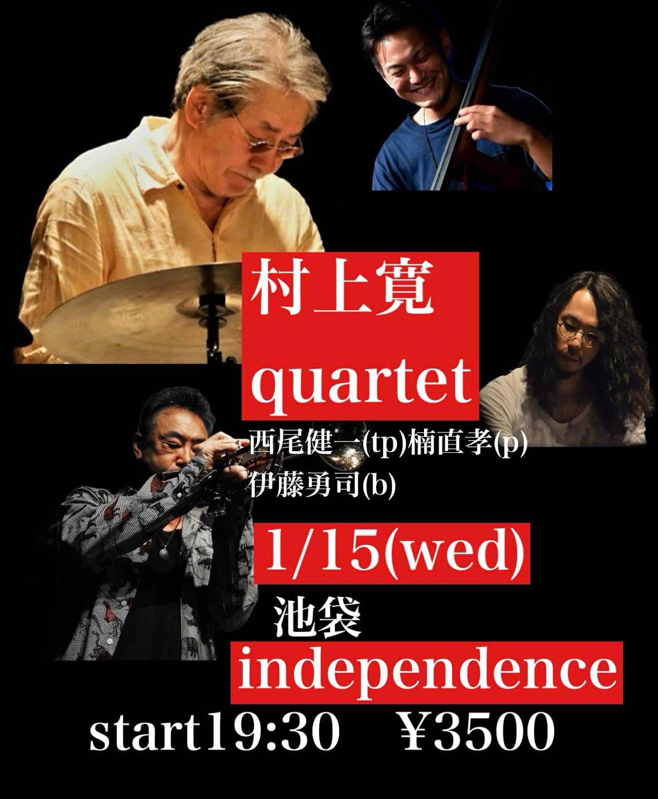 1月15日の水曜日は19:30から池袋インディペンデンスにて村上寛カルテット!