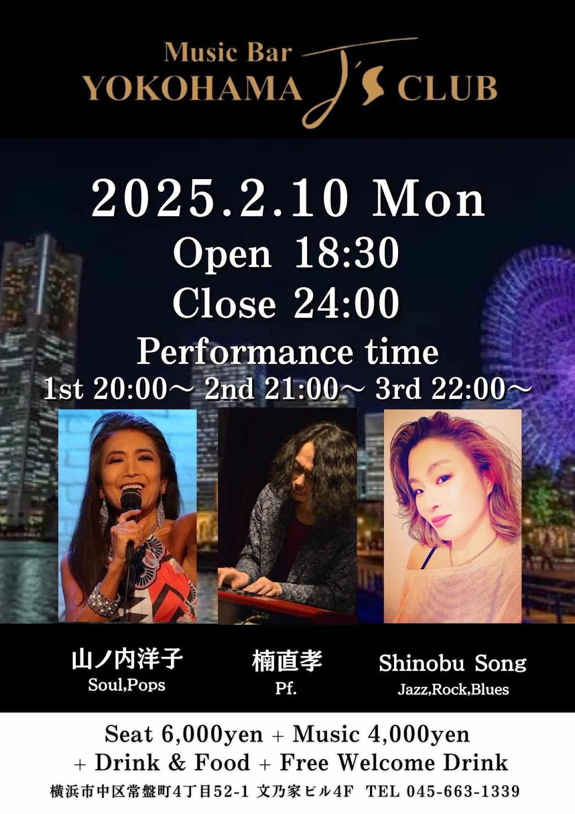 2月10日の月曜はヨコハマジェイズクラブ、山ノ内洋子さん、シノブさんと共演です!