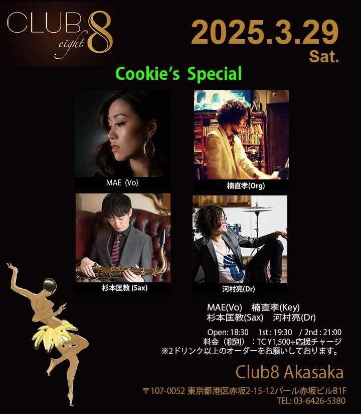 3月29日の土曜日、19:30も赤坂クラブエイト!