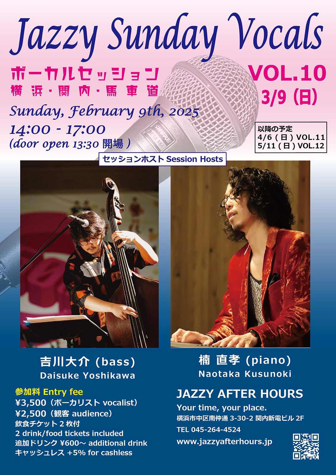 3月9日の日曜日は14時から関内ジャジーアフターアワーズにてボーカルセッション!