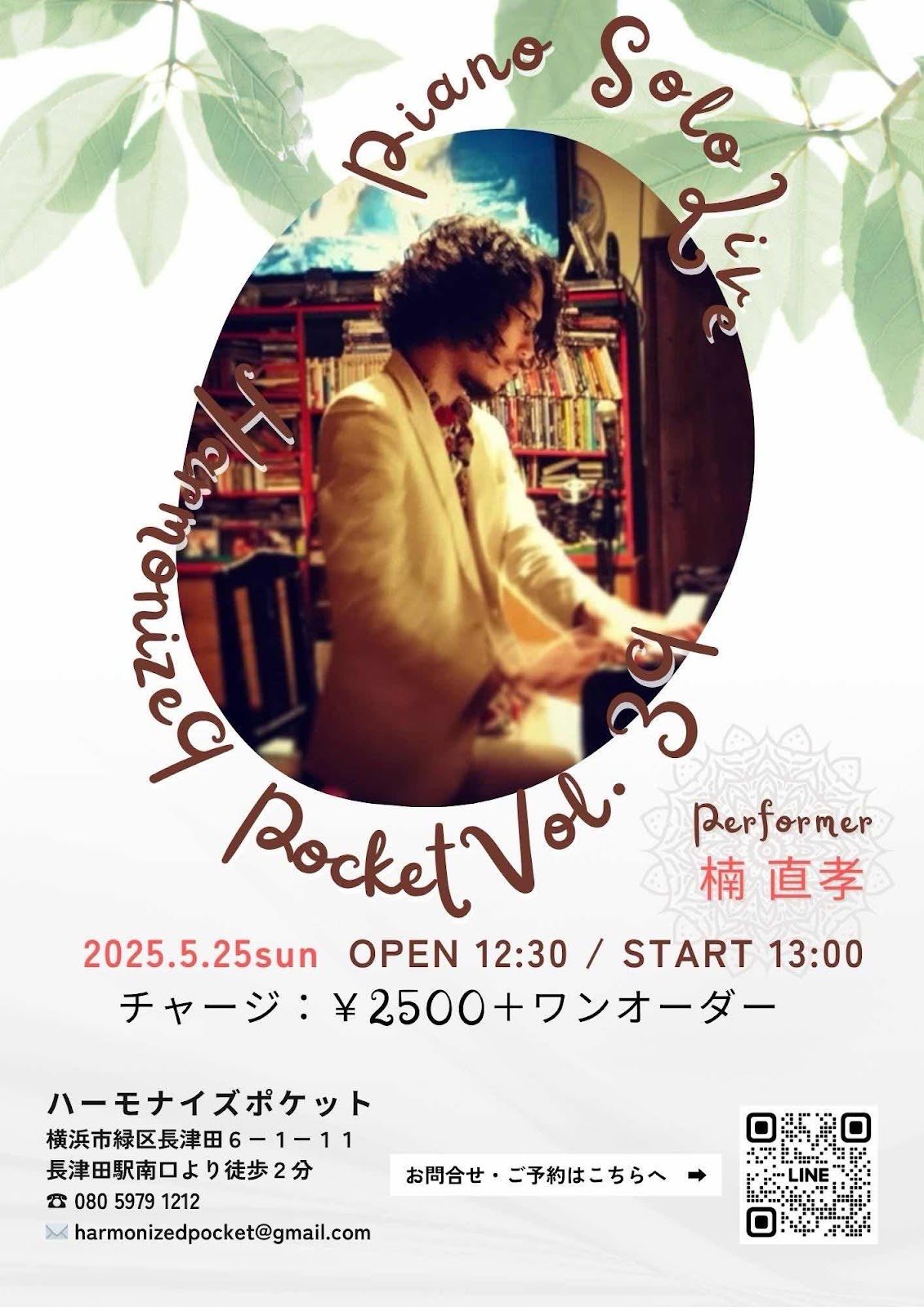 5月25日の日曜日、13時から、長津田ハーモナイズポケットにてソロ!