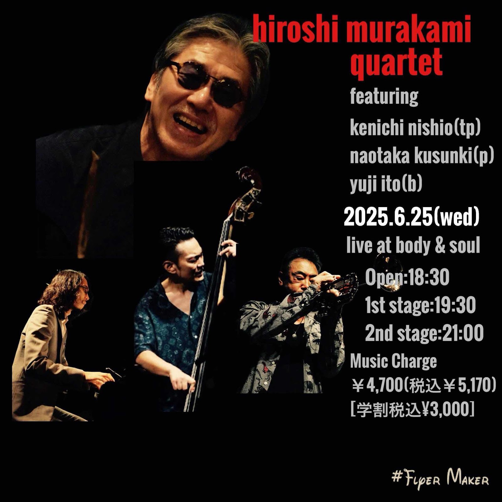6月25日の水曜日は渋谷ボディ&ソウルにて村上寛カルテット!