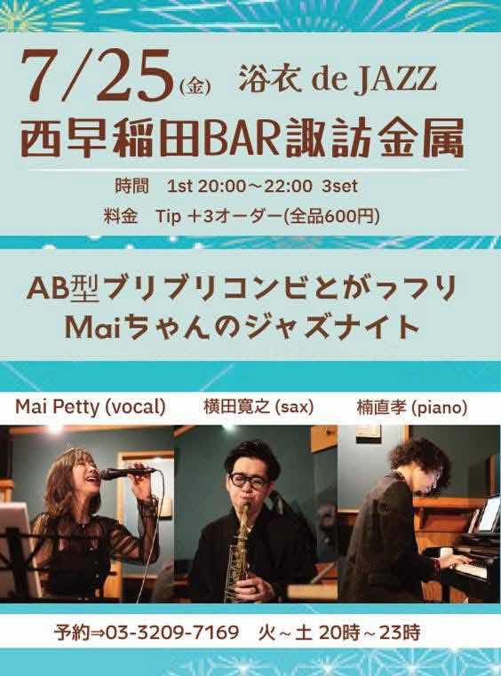 7月25日の金曜日は20時から西早稲田諏訪金属!